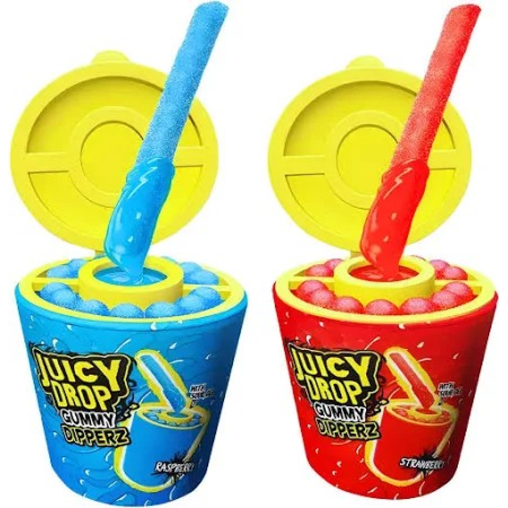 Bazooka Juicy Drop Gummy Dipperz zijn een spannende en innovatieve traktatie die de klassieke gummy-snack naar een nieuw niveau tilt. Deze heerlijke gummies worden geleverd met een dipper en een intense, smaakvolle gel waarmee je je eigen perfecte combinatie van zoet en zuur kunt creëren. Beschikbaar in de smaken: Raspberry en Strawberry.