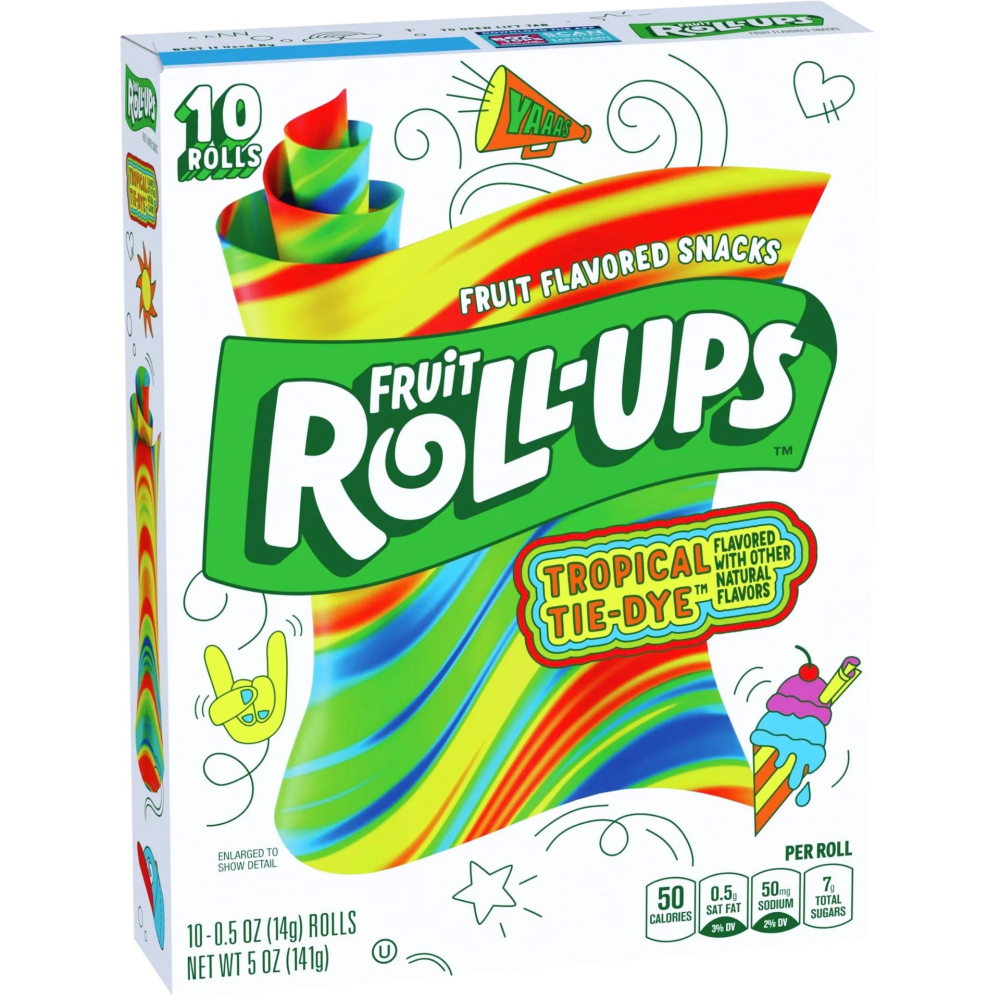 Fruit Roll Ups Tropical Tie-Dye - 141 gram Doosje inhoud 10 stuks.