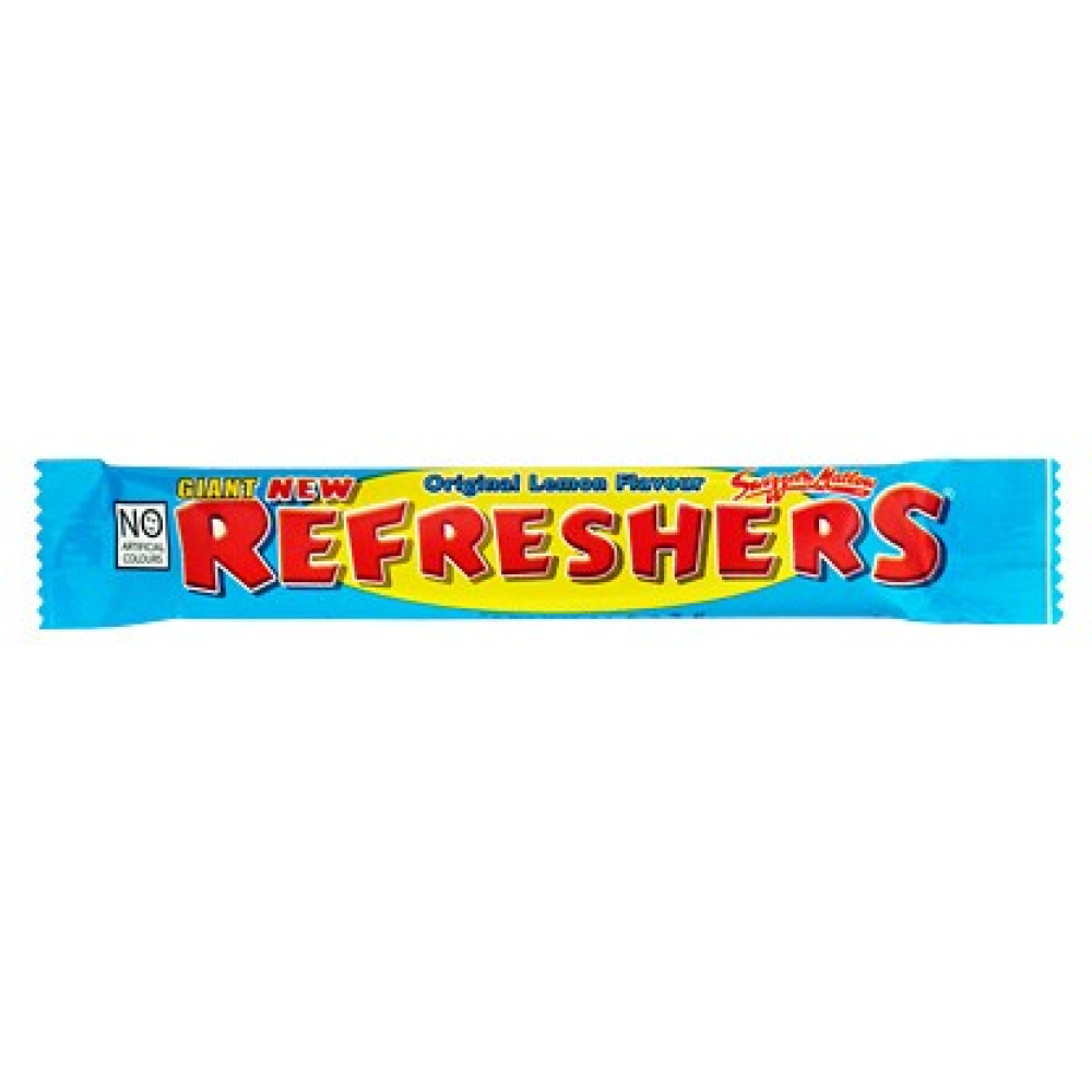 Deze gigantische Refresher-bar is een klassieker; een heerlijke kauwreep met sorbet in het midden zorgt voor een pittige smaaksensatie tijdens het kauwen. Kauwrepen blijven een toonaangevende kauwgom die enorm populair is bij kinderen van alle leeftijden. De smaak is vergelijkbaar met een citroensorbet of citroenijs.